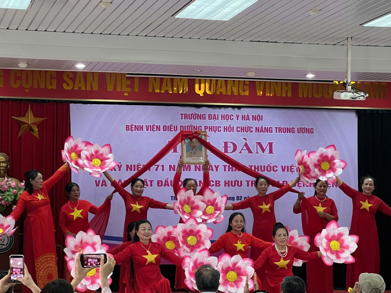 Tiếp nối là các tiết mục văn nghệ đặc sắc do chính đội ngũ viên chức, người lao động cùng các Cán bộ hưu trí của Bệnh viện dàn dựng. Những lời ca, tiếng hát ca ngợi ngành Y, ca ngợi quê hương đất nước đã tạo nên một không gian nghệ thuật đầy cảm xúc và phấn khởi.