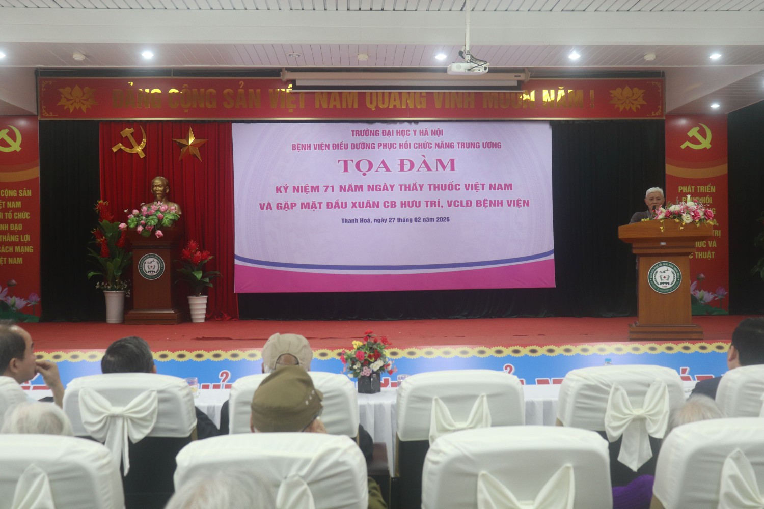 Sáng ngày 27/02/2026, trong không khí ấm áp của những ngày đầu xuân mới, Bệnh viện Điều dưỡng Phục hồi chức năng Trung ương đã tổ chức Buổi tọa đàm Kỷ niệm 71 năm Ngày Thầy thuốc Việt Nam (27/02/1955 – 27/02/2026) và Gặp mặt đầu xuân tri ân các cán bộ hưu trí, viên chức, người lao động.